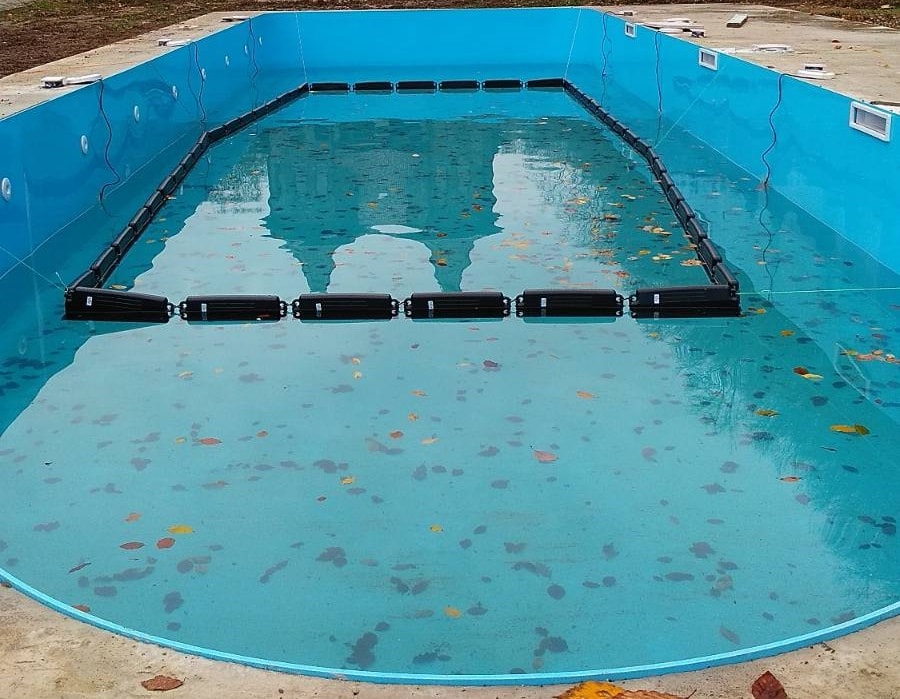 Protecting the water surface is the final and one of the most important stages of preparing the pool for winter. Before installing the cover, special compensation floats must be placed. Their task is to reduce pressure on the pool walls during freezing and thawing.